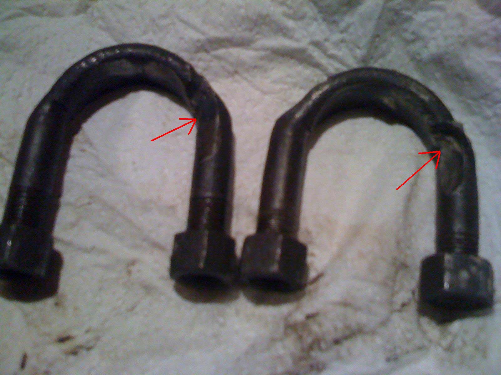 2. Par contre, ceux-ci (les 2 "U-bolts", qui étaient bien serrés avant démontage) ont été férocement attaqués au niveau du coude,