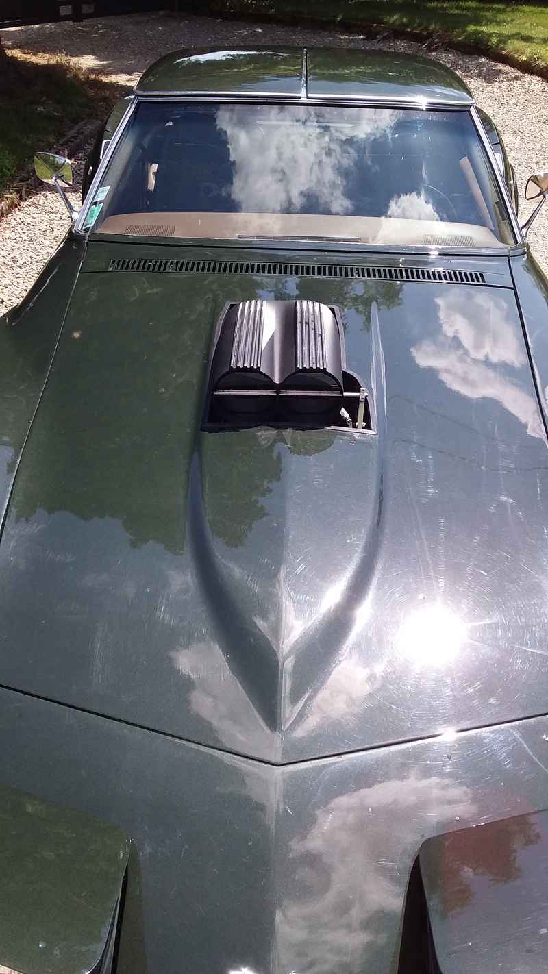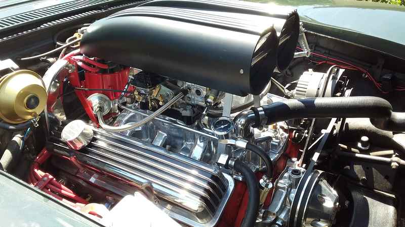 Le moteur n'est pas d'origine. C'est un "BluePrint" récent (moins de 5000km), de 355CI et qui développe 390 CV (au vilebrequin, soit 300cv environ sur le train arrière). Boitoto TH400, carbu Holley quadruple corps, allumage électronique MSD et échappements latéraux Hooker. Donc coté mécanique, c'est plutôt pas mal, reste l'intérieur qui est propre mais dans son jus (donc à changer), et une peinture un peu fatiguée que j'envisage de faire refaire ultérieurement.