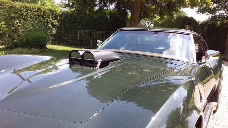 Réflexion réflexion, ça bouillone dans la marmite, je me racle un peu la soupière.. Il aurait été possible de mettre une drop base pour un filtre à air qui vient chercher de l'air juste devant le radiateur, mais niveau look sous le capot ça ne me convenais pas vraiment.. Pas dutout même.. Après les gouts et les couleurs hein.. Donc 2 solutions: Monter un hood scoop rectangulaire propre sur le capot avec mon filtre à air qui arrive juste en dessous.. Pis je me suis dit, tant qu'a faire un trou dans ton capot de 71 (cauchemar pendant 1 semaine