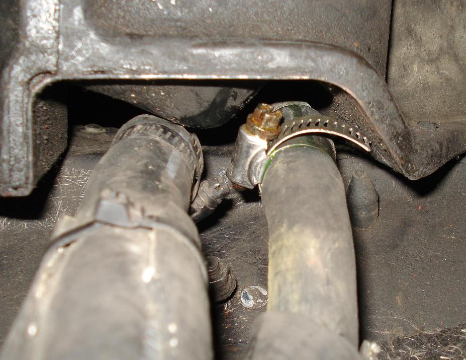 Fuite devant le carbu (j'ai pas encore enlevé la prise d'air pour en savoir un peu plus) et suintement sur la durite d'arrivée de radiateur (photo 3).
