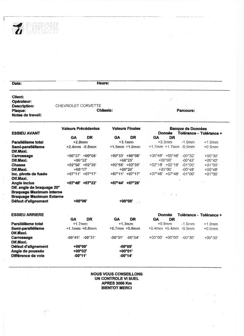 Merci pour ton doc, mais tes valeurs sont toutes en degrés et minutes alors que le document qui m'a été remis contient des valeurs pour le parallélisme en mm