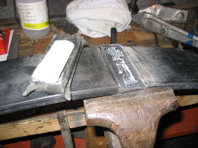 j'ai recollé les plaquettes caoutchouc du kit de rabaissement (en fait je les aient collé par prudence, mais elles sont coincées entre la lame et la caisse , plus des cavaliers par dessous )