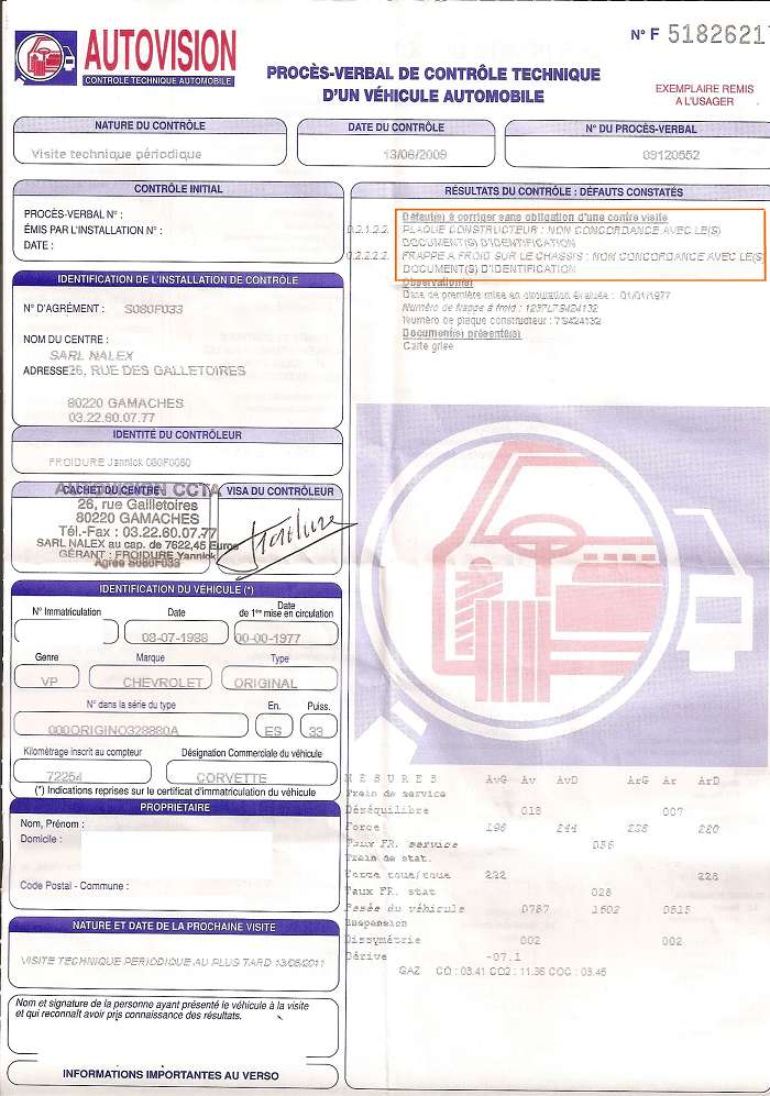 Au hasard de mes recherches, je suis souvent tombé sur des CT portant des mentions du type : "non concordance de la frappe à froid avec papiers officiels" (voir encadré rouge de la photo jointe).